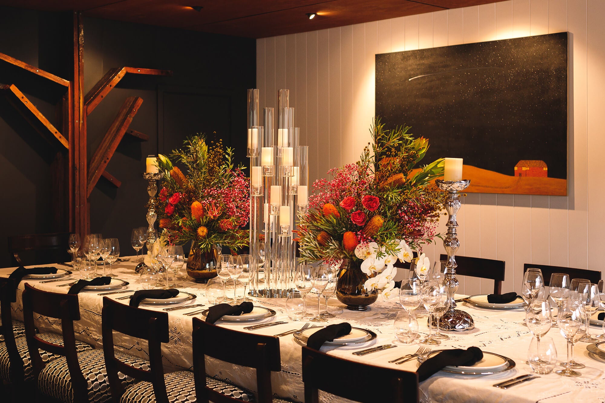 Our one of a kind gallery restaurant is the perfect space to for any event with its stunning architecture and fine art display. From canapés to formal dinners, this is the space.