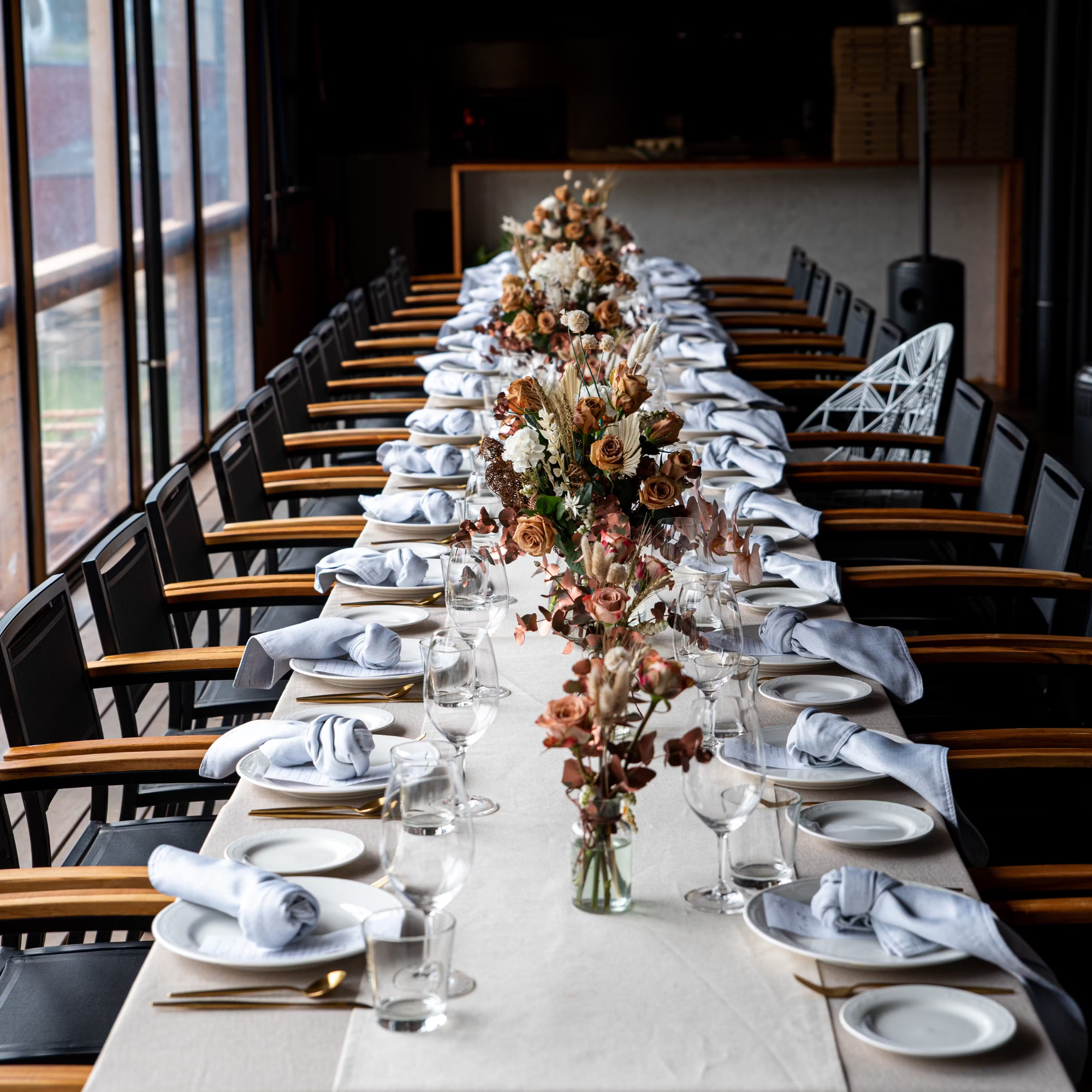 The Deck is a versatile and weather-protected space, offering comfort and elegance in every season. Fully enclosed with café blinds, heating for cooler days, and cooling systems for warmer weather, it ensures a seamless experience for you and your guests.